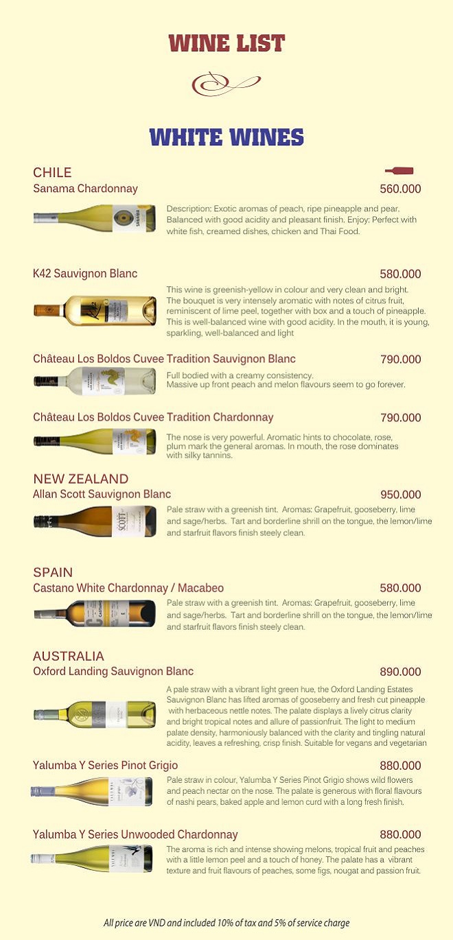 Drink menu